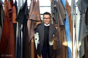 平日儒雅的郭涛,工作起来可是很认真的,他仔细询问皮革的各项制作工艺,俨然是最有颜值的皮革设计师。