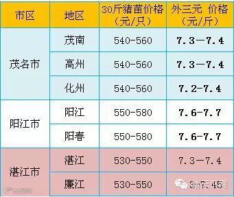 (备注:加粗部分是相对昨天有所变动的猪价)