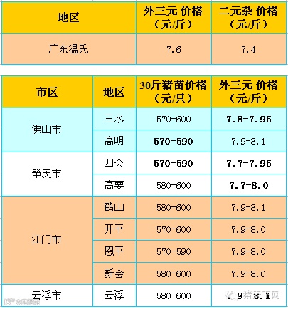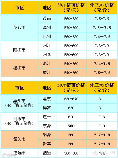 (备注:猪价为喂湿料猪至喂干料猪出栏价格,加粗部分是相对昨天有所变动的猪价)
