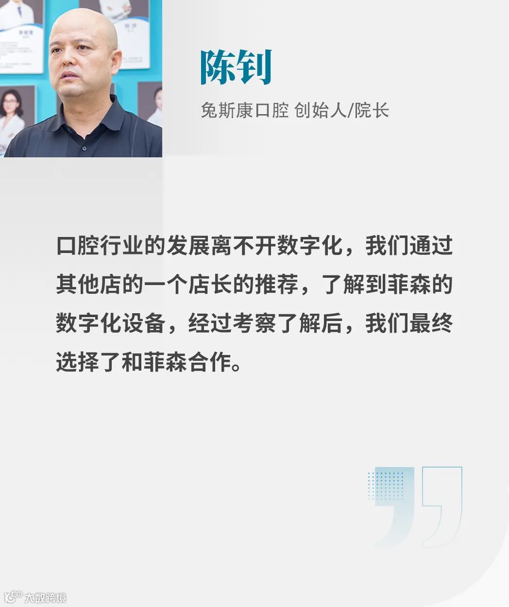 兔斯康口腔秉承“精修每一颗牙齿,不负每一个家庭”的使命,与菲森科技“让每一次诊疗更加值得信赖”的愿景如出一辙。菲森科技携手兔斯康口腔,实现了诊疗流程的数智化再升级,让每一个环节都充满了精准与高效,为更多患者带来口腔健康与微笑。
