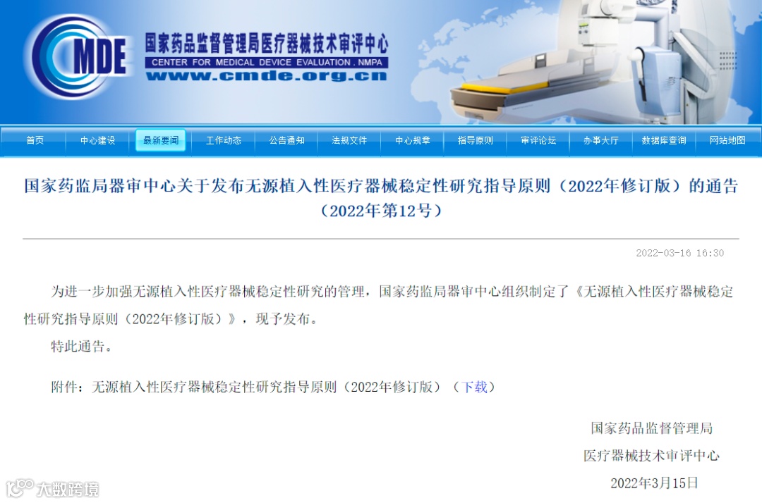 • 无源植入性医疗器械稳定性研究指导原则(2022年修订版)发布