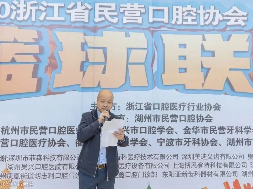 浙江省口腔医疗行业协会会长曹志毅,浙江省口腔医疗行业协会副会长林松,湖州市民营口腔协会会长陆蔚人与菲森科技影像事业部总经理徐军为比赛致辞。