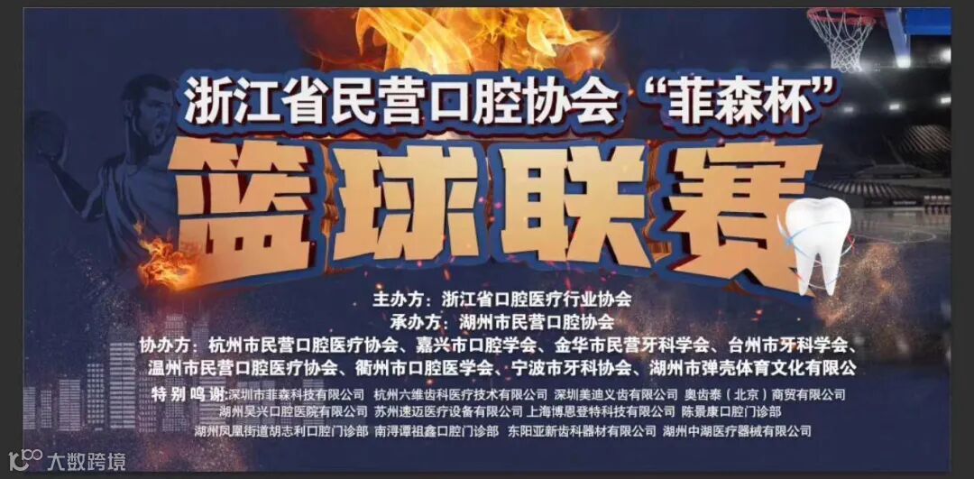 本次“菲森杯”篮球联赛在浙江省口腔医疗行业协会的领导下,由湖州市民营口腔协会负责承办,杭州市民营口腔医疗协会、嘉兴市口腔学会、金华市民营牙科学会、台州市牙科学会、温州市民营口腔医疗协会、衢州市口腔医学会、宁波市牙科协会、湖州市弹壳体育文化有限公司共同参与和协办。