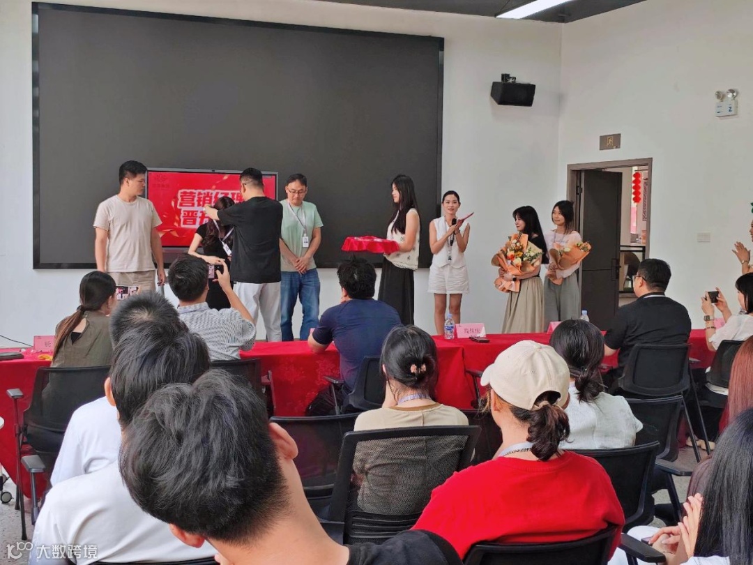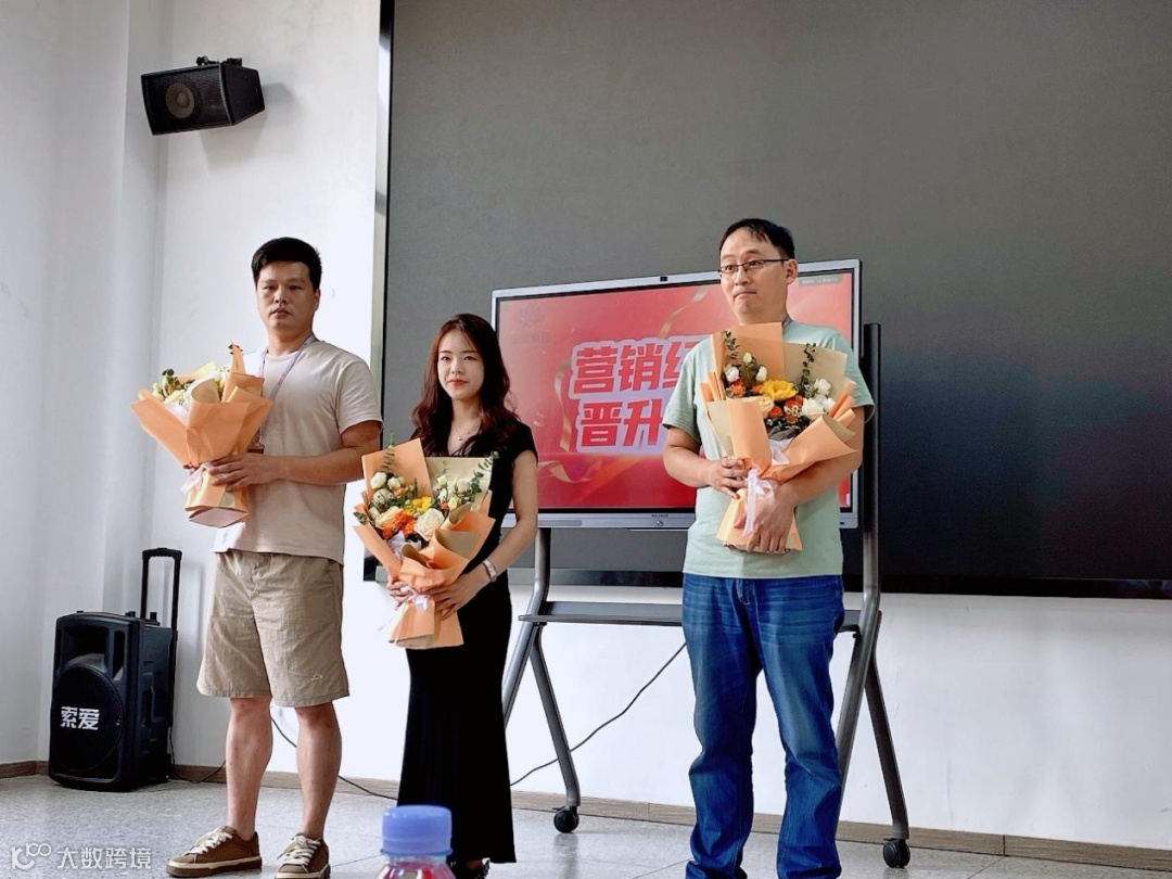 接下来,公司董事长兼CEO老简为晋升的营销经理们颁发了晋升新工号牌,内训师徽章和鲜花,这不仅是一份荣誉,更是一份沉甸甸的责任。晋升经理们接受荣誉的那一刻,脸上洋溢着自豪和喜悦的笑容。
