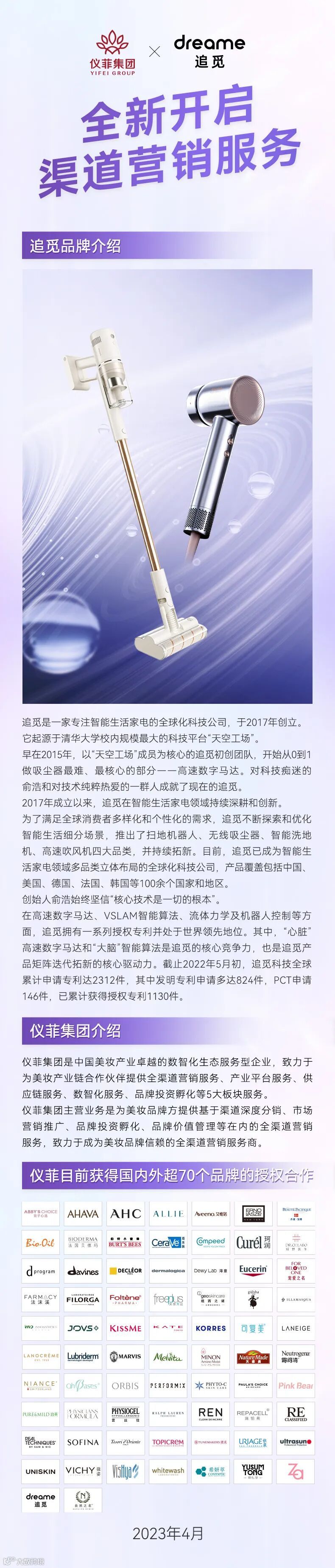仪菲集团是中国美妆产业卓越的数智化生态服务型企业,致力于为美妆产业链合作伙伴提供全渠道营销服务、产业平台服务、供应链服务、数智化服务、品牌投资孵化等5大版块服务。