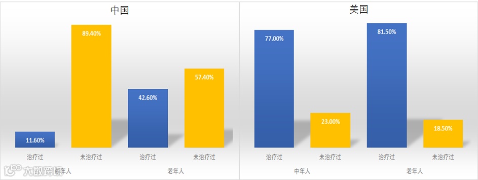 当前中国国民口腔健康状况仍然严峻,患病率高、就诊率低。对比美国,在中年人群,美国就诊率达77%,中国仅11.6%;在老年人群,美国就诊率达81.5%,中国为42.6%。