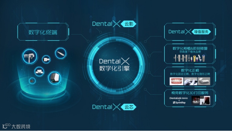 纵向,Dental X通过“云+AI”串联起影像设备、管理软件、3D设计平台、技工所、诊所的完整价值链
