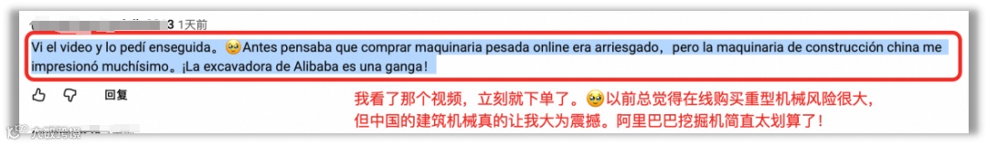 行程结束后,他将走访中国工厂的视频完整展示了出来,讲述自己的见闻,还造了个词叫“阿里巴巴挖掘机”——就用它来指代那些可以从阿里国际站上买到的高质量的中国挖掘机。