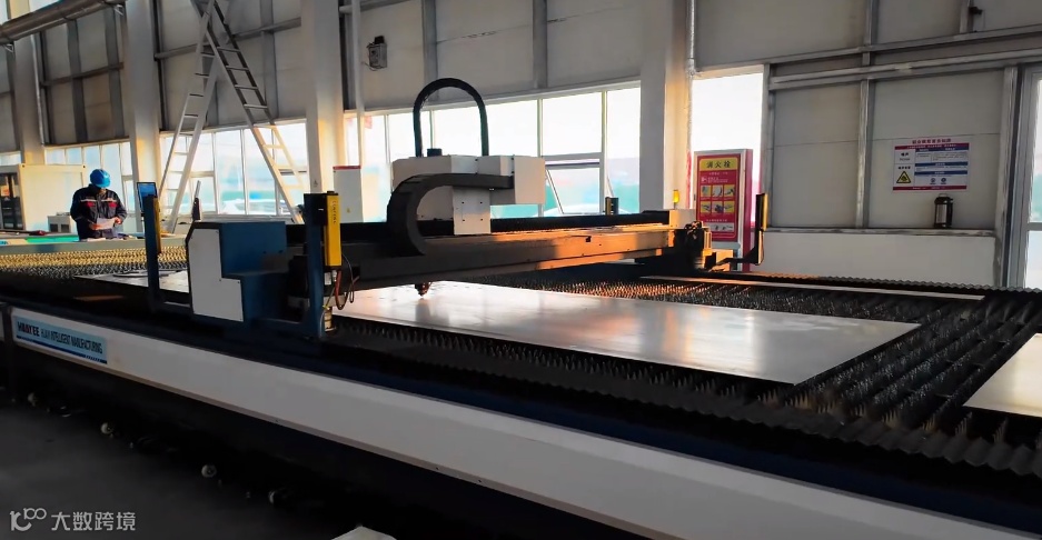 走在厂区里,首先震撼他的是一台26米长的大型数控切割机: