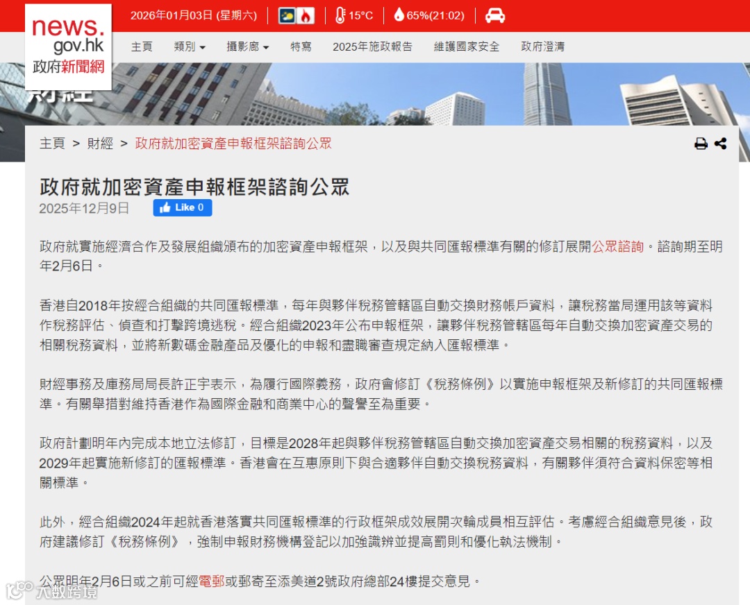 香港2027年开始会收集加密货币资产信息,2028年开始参与的国家地区一年交换一次。