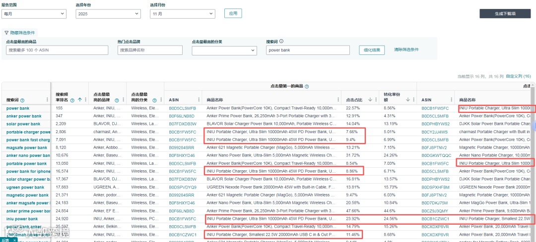 深耕3C领域的INIU,在充电宝红海市场直面Anker等头部大卖。通过精准适配Rufus算法逻辑,其在ABA关键词排名中实现显著跃升: