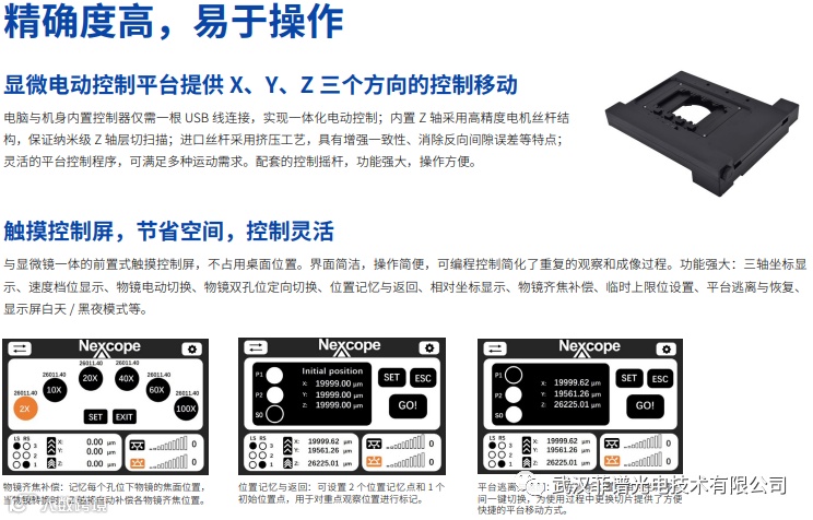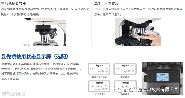 采用 NIS 无限远光学系统,先进的光学部件制造技术,使多种观察方法的实现成为可能。而且完美的柯勒照明 为显微镜提供明亮而均匀的视场。在此基础上,Nexcope 不断优化客户产品使用体验,NE910 符合人体工学设计, 使观察与操作都可以保持舒适的姿势