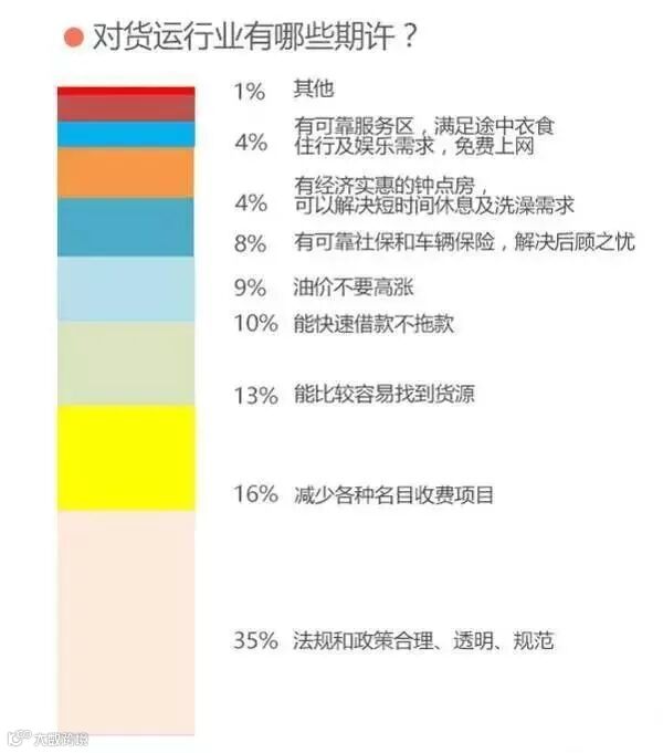 而司机对未来货运行业的期许最大的是,希望连接货运的各个政府部门统一管理,合法、合规,支持我们3000万货运司机。