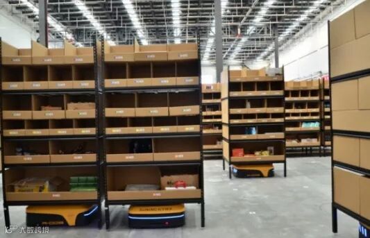 无独有偶,在位于上海奉贤区的苏宁物流基地,AGV(自动导引运输车)机器人仓库几千平方米的范围内,只有几名工作人员,却又上百台AGV。这些AGV看起来像是放大版的家用扫地机器人,直径一米、高半米,可以承重800公斤的货品行走自如,可以轻松扛起200个电脑显示器。在这里,商品的拣选不再是围着货架跑,而是等着机器人拖着货架排队跑过来,打破了传统的“人到货“的拣选模式。现场工作人员介绍,1个AGV机器人可以替代10名工人,单件商品平均拣货时间为10秒,挑选准确率可达99.99%以上。