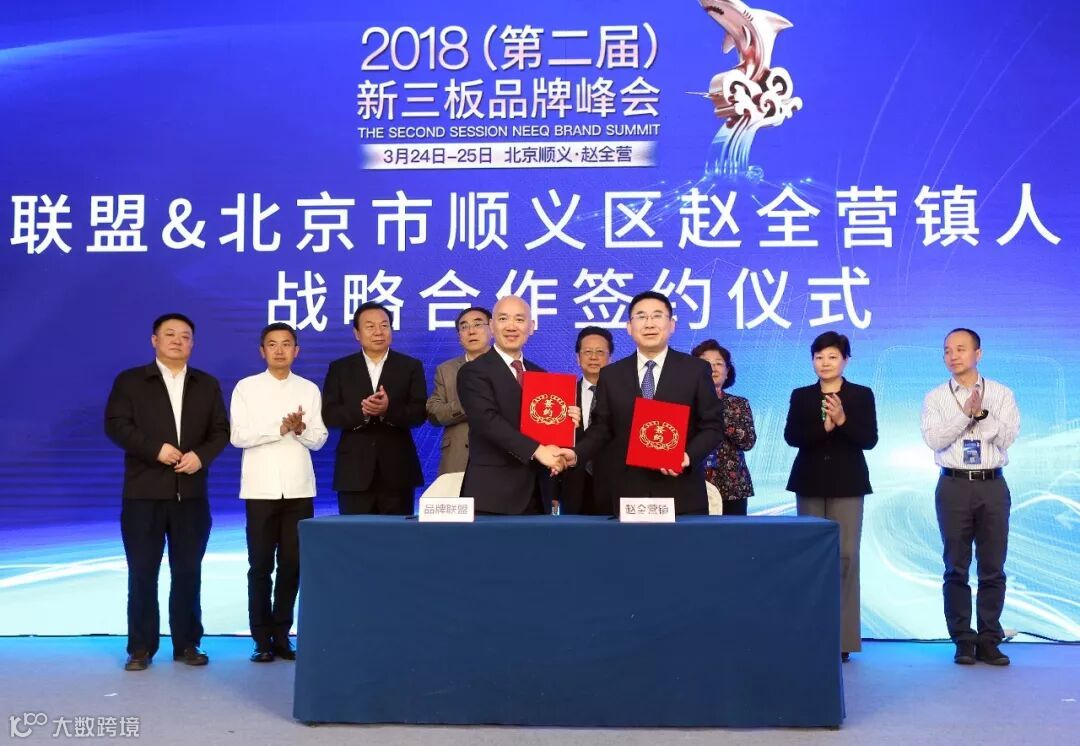 陈昌智、张丽君、陆倩、刘纪鹏、李晓林、李在东、毛大庆共同启动了大会。开幕式上,北京市顺义区赵全营镇人民政府与品牌联盟(北京)咨询股份公司进行了战略合作签约。双方旨在通过深度战略合作为新三板发展、为推动中国自主品牌发展发挥自己的光和热。北京市顺义区赵全营镇镇长李志刚,品牌联盟(北京)咨询股份公司董事长王永分别代表双方上台签约。