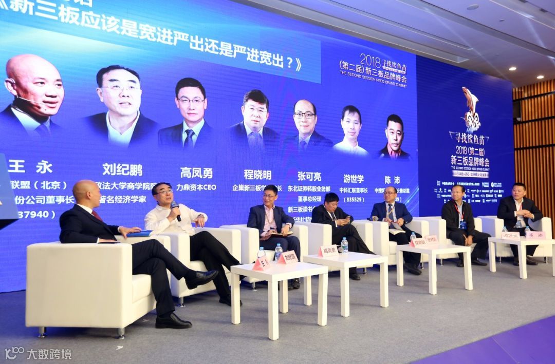 开幕式最后进行了《新三板应该宽进严出还是严进宽出》的高峰对话。对话主持人王永邀请刘纪鹏与力鼎资本CEO高凤勇、企巢新三板学院院长程晓明、东北证券转股业务部董事总经理张可亮、中科汇联董事长游世学、中搜网络董事长陈沛进行了热烈的观点交锋。