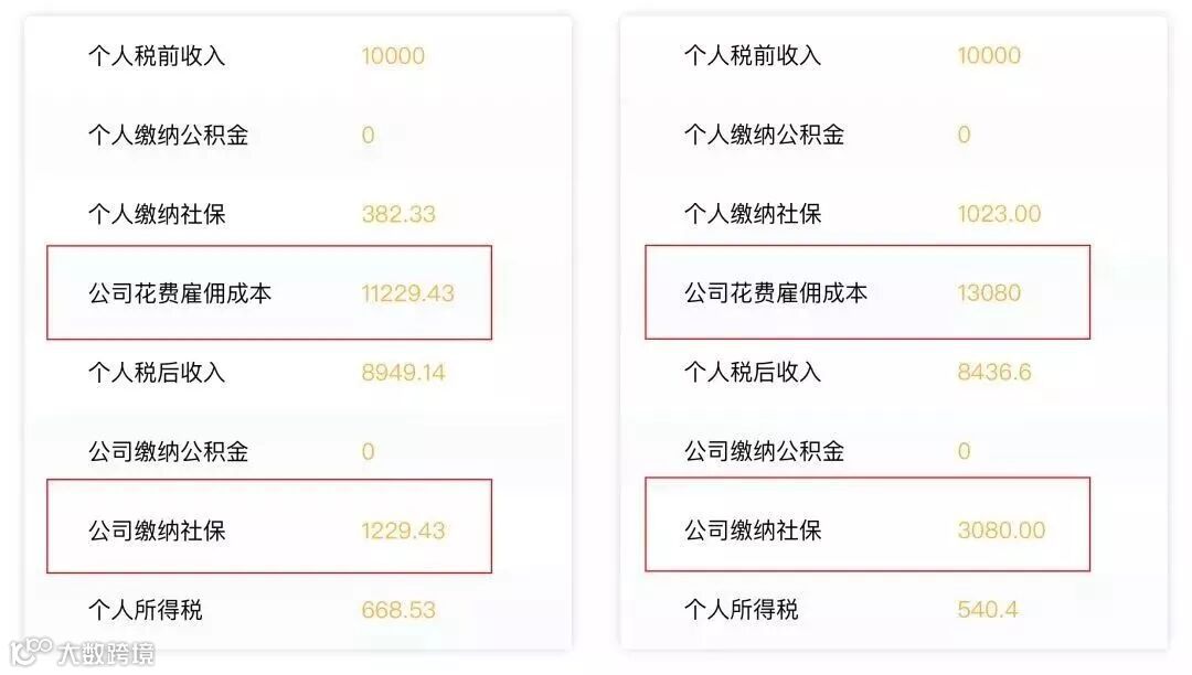 右图:按实际工资,公司缴纳3080元