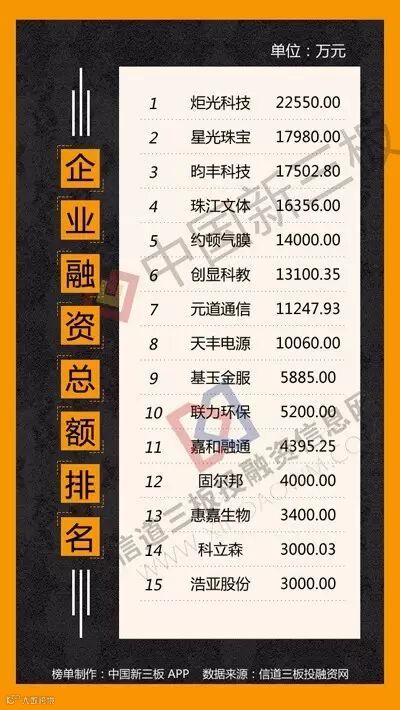 主办券商融资方面,招商证券以2.51亿元排在该指标首位,中泰证券、国信证券、中信建投分别2.22亿元、1.75亿元和1.64亿元排在其后。