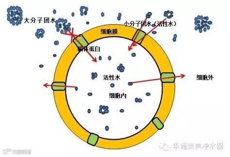 大分子团水不容易进入细胞,使细胞内的水越来越少,越来越酸。小分子团水可轻易通过2纳米的亲水通道进入细胞,带入营养,带出酸毒,对保养身体,延缓衰老,防病治病的效果是不言而喻的。喝弱碱性小分子团水,不需要再另外“补”充营养品、保健食品,吃少量酸性的肉蛋奶糖等,多吃弱碱性的蔬果粗粮就可达到健康、无病、长寿的目的;喝弱碱性小分子团水,不需要做面膜、涂搽润肤、洁肤、丽肤、紧肤、营养、祛癍霜等护肤品,就可使肌肉饱满,皱纹少,皮肤细腻红润,显得年轻漂亮,老年人无老相。