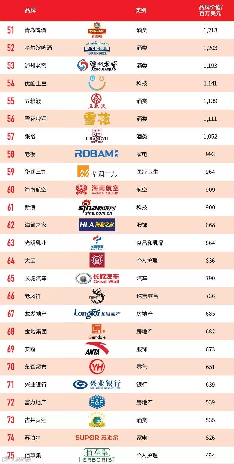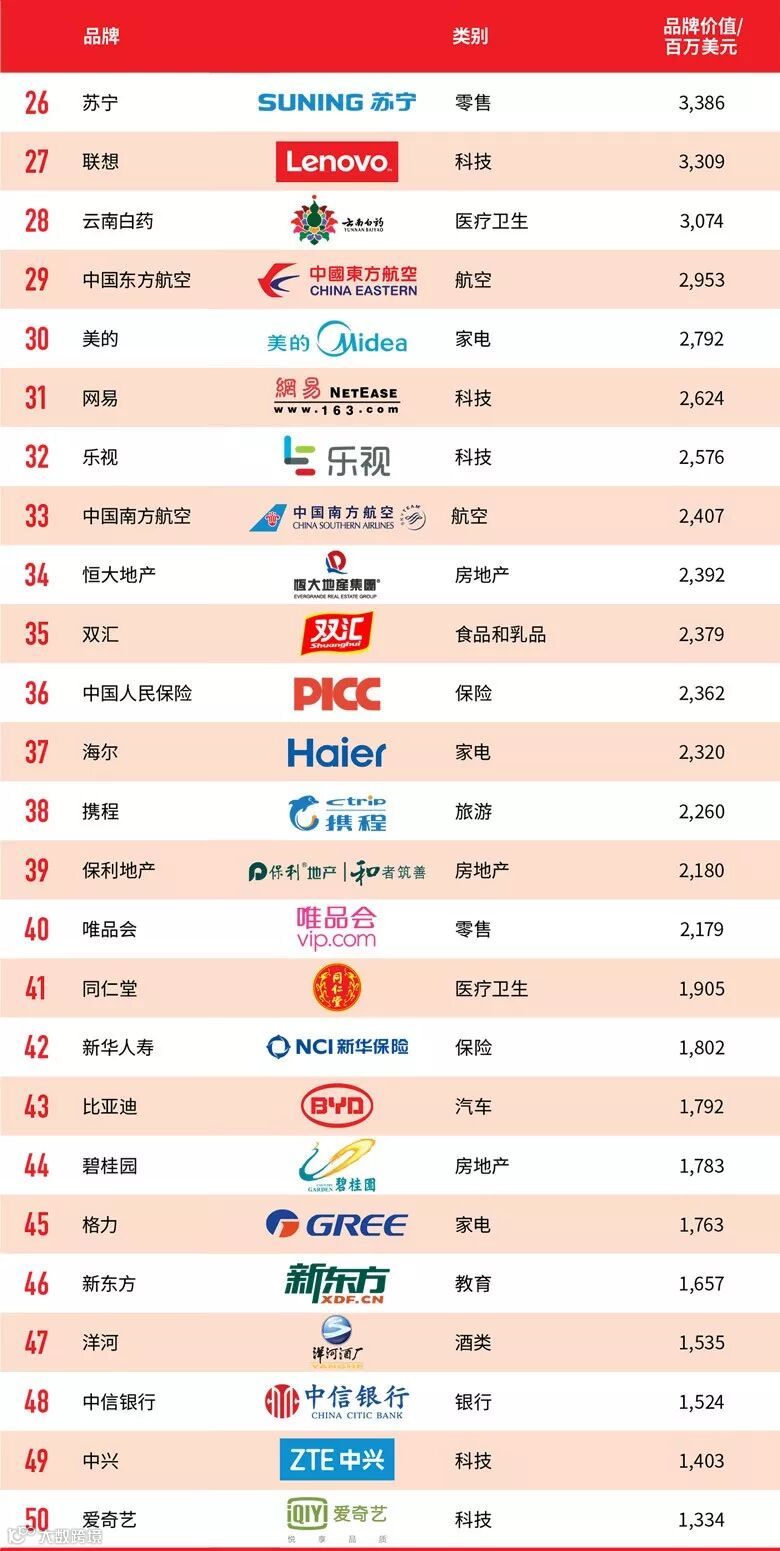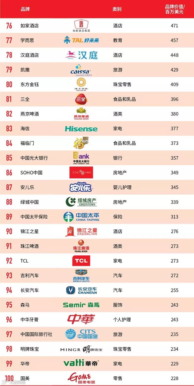 如果有人问“当今最具参考价值的中国品牌榜单是什么”?毫无疑问,国际传播巨头WPP旗下权威调研公司Millward Brown每年颁布的“最具价值中国品牌100强”是重要的品牌价值参考依据。这个榜单上的品牌品类除了涵盖科技、零售、家电、银行、食品等各大领域,只有达到了极为严格的估值标准才能够上榜。