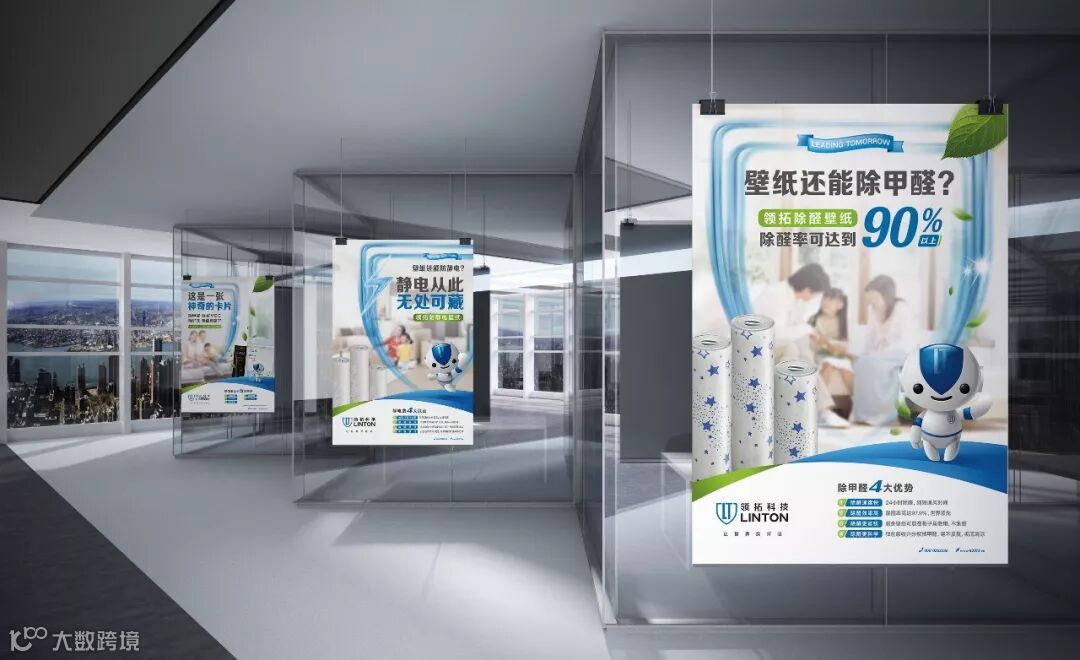 项目之初,柏高中国项目组对除醛产品和壁纸行业进行了充分调研,制定了品牌市场、人群定位,提炼出“用领拓,深呼吸”的核心广告语。在设计上,沿用行业中以品牌名称为LOGO主体的设计思路,突出领拓科技的品牌识别。