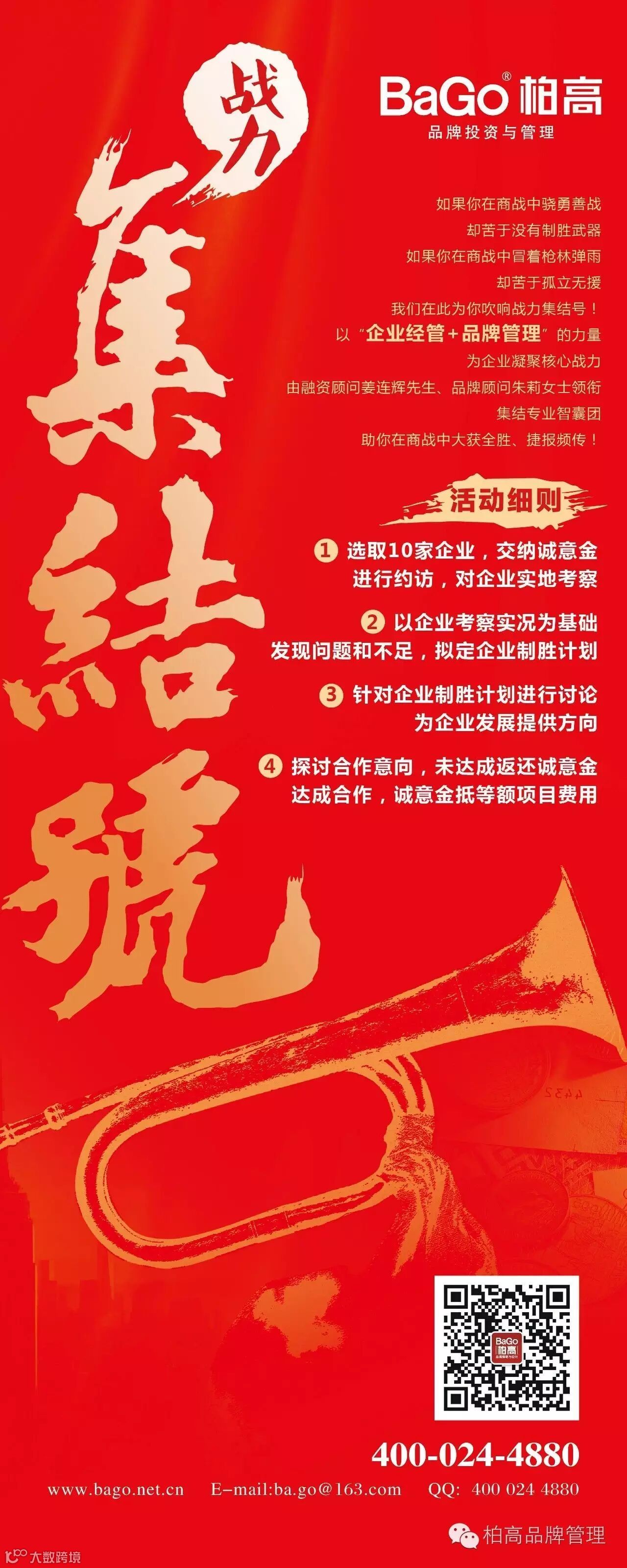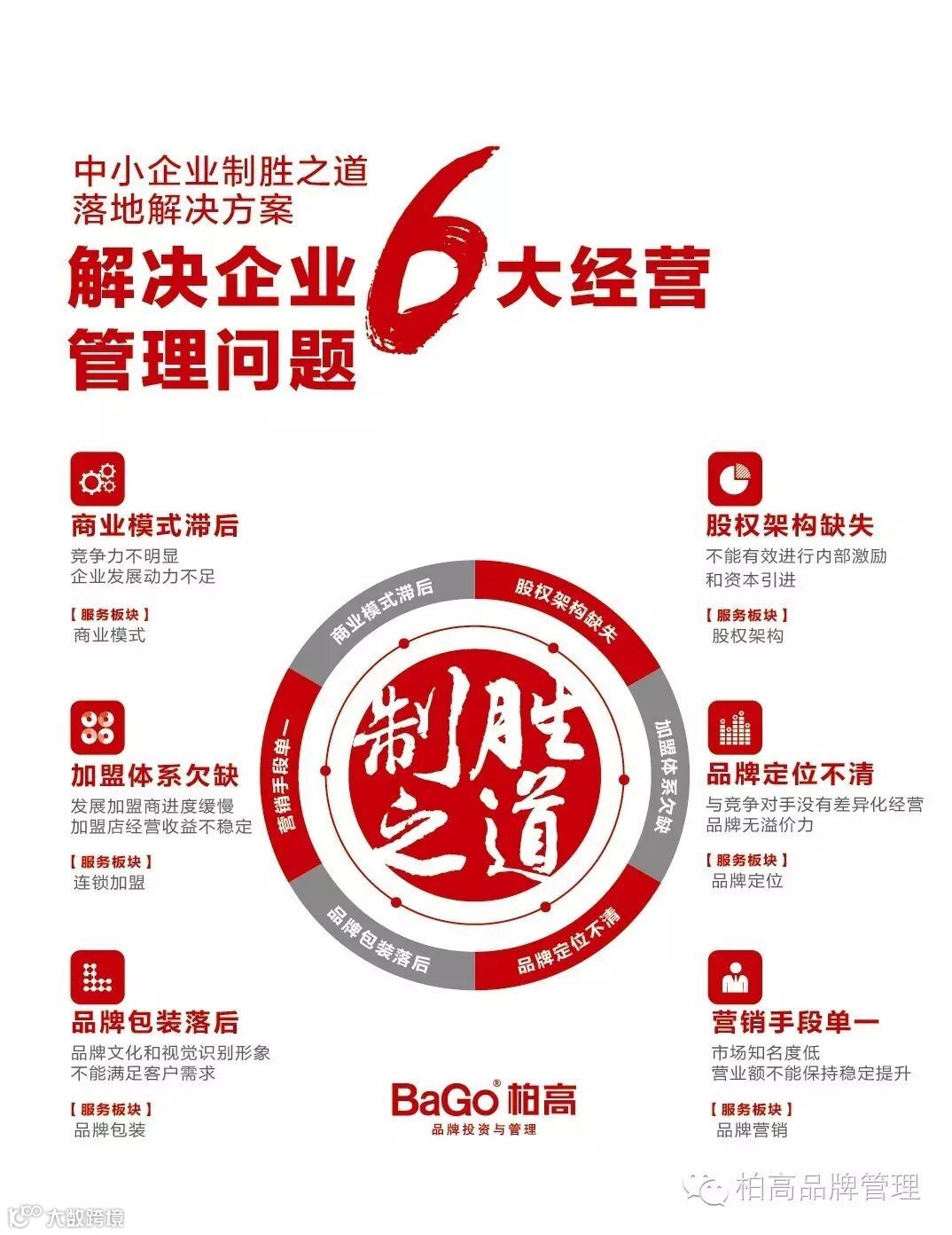 2016年8月22日,柏高品牌投资与管理以“中小企业制胜之道落地解决方案”,加入“制胜之道”系列课程,致力于为企业解决6大经营管理问题。在本次课程当中,柏高品牌将以“企业经管+品牌管理”为核心,为企业凝聚核心竞争力。柏高品牌专业顾问,将进入有合作意向的企业进行实地考察诊断,拟定企业制胜计划。