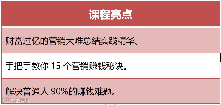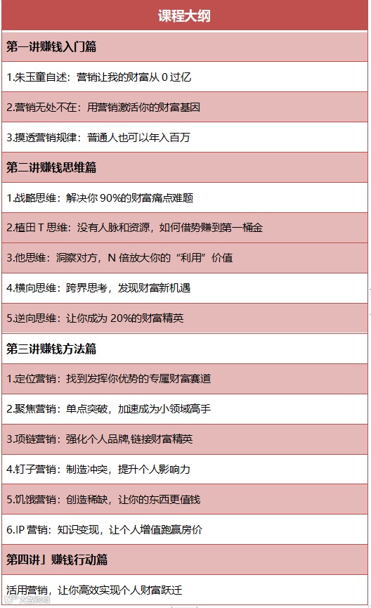 如果你想实现财富自由,拥有一套全面完整的营销思维,不想再为钱烦恼,那么,这一次小编强烈推荐朱玉童老师精心准备的课程《打开财富自由之门》给你,一旦学会,将是受益终生的技能!