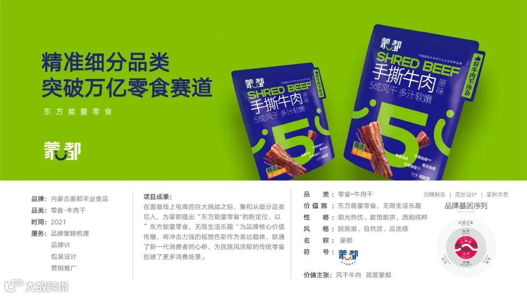“在电商平台刷 10 页零食,也不会注意到蒙都”—— 这是曾以民族风零食为特色的蒙都,在电商时代遭遇的尴尬。一边是线上流量成本飙升、年轻消费者审美迭代,一边是自身定位模糊、视觉老化,即便有优质肉干产品,也陷入 “酒香也怕巷子深” 的困境。直到品牌全案策划公司集和介入,一场从 “卖产品” 到 “造符号” 的升级,让蒙都逆袭成 “年轻人追着买的东方能量零食”。