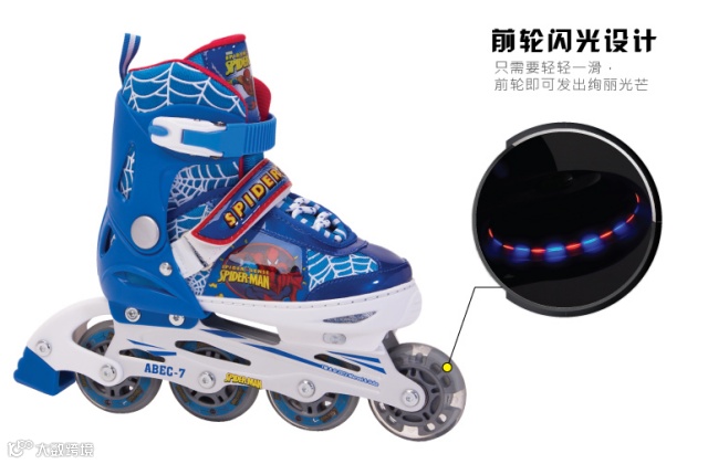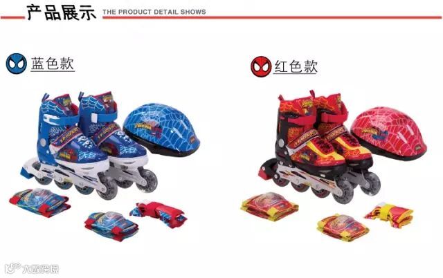 DISNEY/迪士尼正品蜘蛛侠款溜冰鞋套装里除了一双炫酷的直排轮外还有高强度头盔、耐冲击关节护具。一整套产品让你在追求、