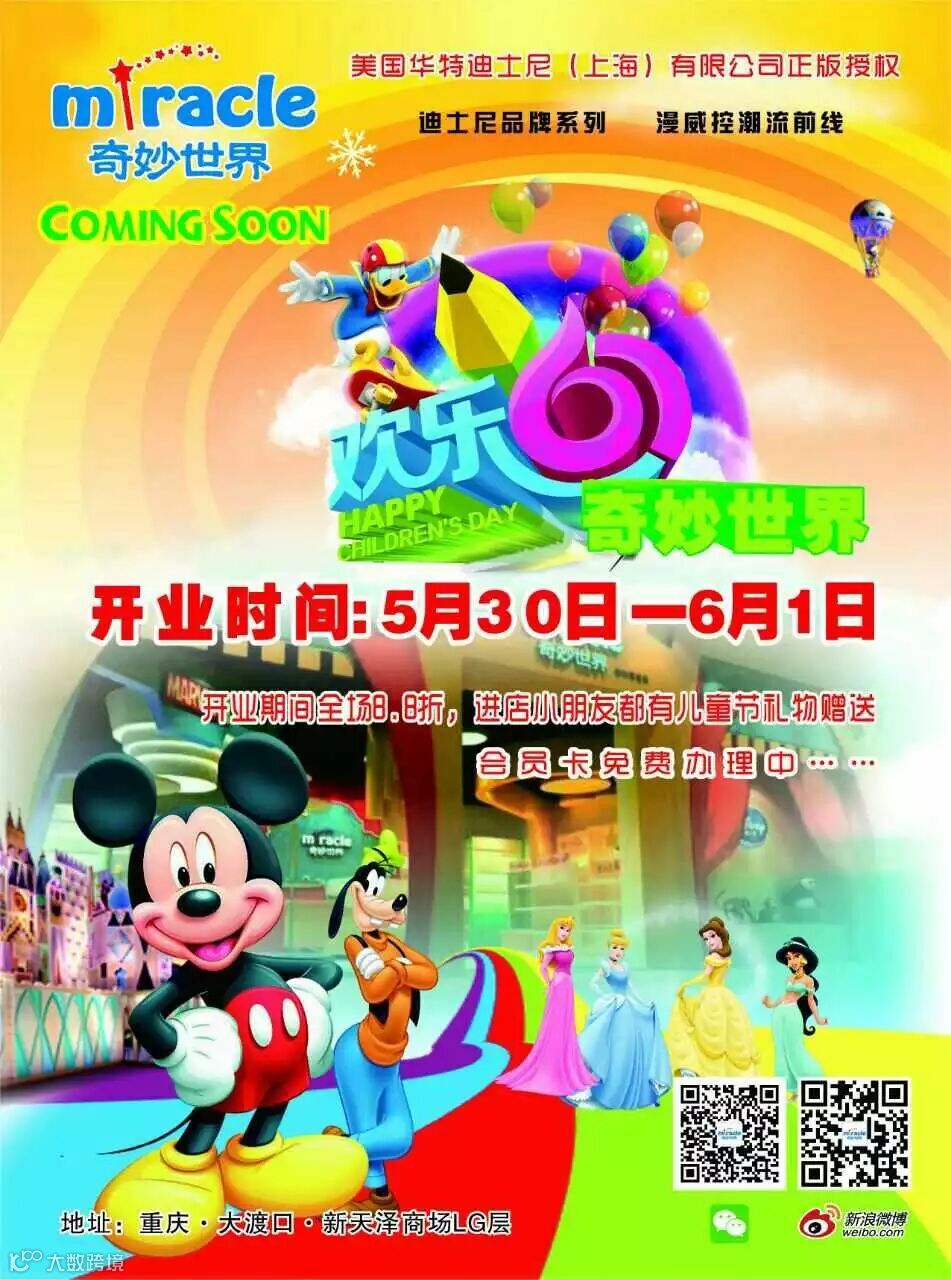奇妙世界MiracleWorld据悉5月30日,经华特迪士尼授权和奇妙世界授权,重庆首家奇妙世界店登陆重庆,欢庆六一!