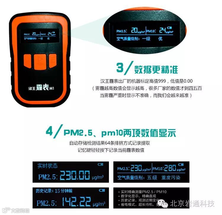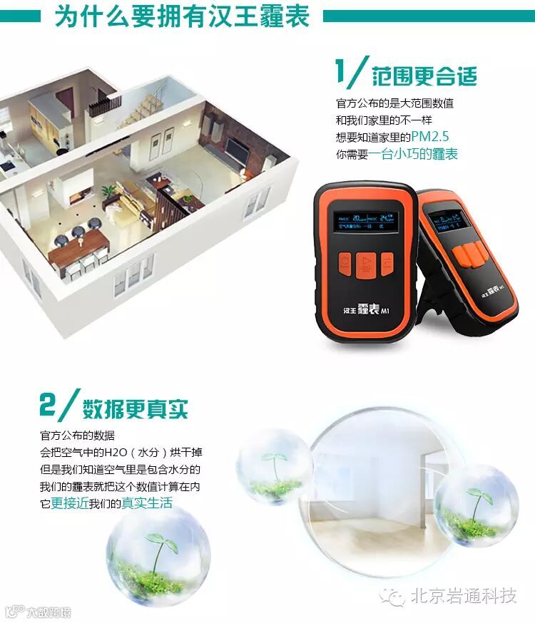 汉王蓝天霾表(PM2.5检测仪)采用新的核心算法,综合空气动力学、微光探测、数字信号处 理、光机电一体化等商新技术。具有测试精度高、性能稳定、响应时间快、便 于携带、操作方便等特点。在PM2.5的检测上,以创新性的设计与算法,大幅 度的降低了测试仪成本,并达到了国际同类产品的先进性能指标。