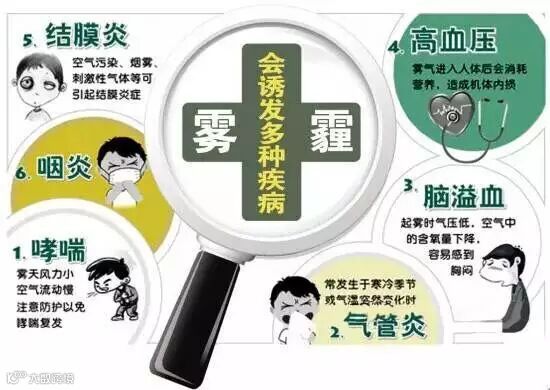 哈佛大学公共卫生学院证明,阴霾天中的颗粒污染物不仅会引发心肌梗死,还会造成心肌缺血或损伤。