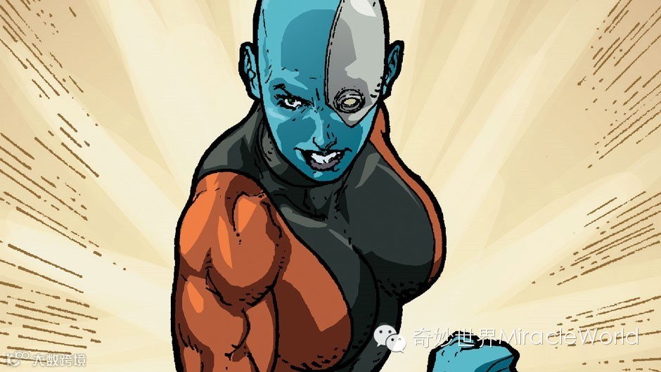 星云是一个星际大盗,曾经摧毁了新星军团所在的星球(山达尔星)。她的肌肉组织远比人类的强大,拥有超人的力量,可举重800磅(363公斤)-25吨(25000公斤),她还拥有与魔形女一样的变型能力。星云的格斗能力十分强悍,她同时也是武器大师。虽然传说星云是灭霸的孙女,但星云不仅设计夺走过灭霸的无限手套,还把灭霸困了起来。