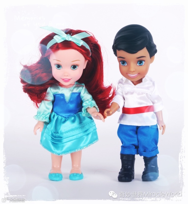 这是一款按照动画《小美人鱼》中小美人鱼公主和王子所设计的儿童套装玩具,由一个公主娃娃和王子娃娃组成。公主娃娃小巧生动,拥有一头红色长发;小王子肤色为咖啡色,笑容十分天真可爱。人物服饰也非常精致,公主的蓬蓬裙,王子的翻脚裤十分可爱。其中娃娃的鞋子可以自由穿戴,小公主的头发可以自由编织,而且美人鱼的故事更是可以让孩子拥有一个童话般的爱情故事!