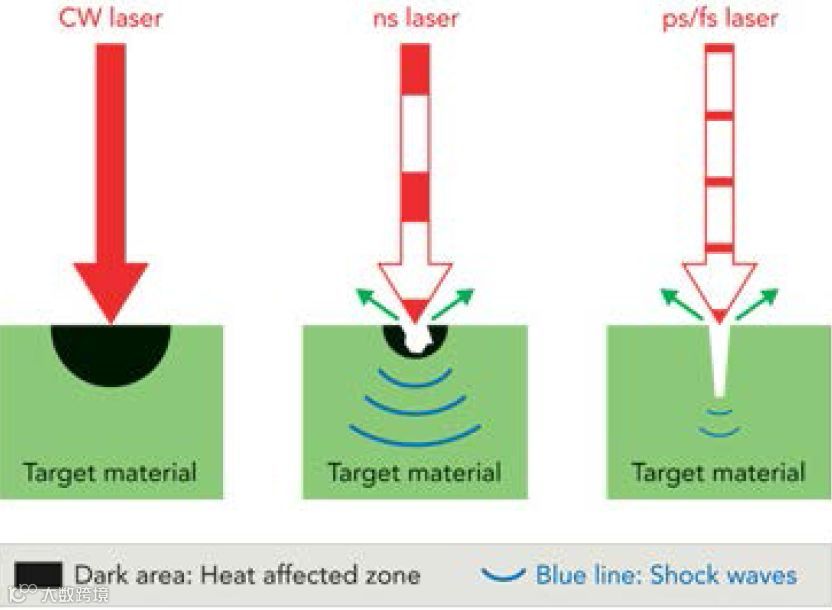 人们很早就尝试利用激光进行微加工。但是由于激光的长脉冲宽度和低激光强度造成材料熔化并持续蒸发,虽然激光束可以被聚焦成很小的光斑,但是对材料的热冲击依然很大,限制了加工的精度。唯有减少热影响才能提高加工质量。