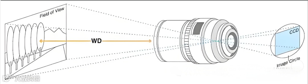 工作是指镜头前部到被检测物体表面的距离,也就是镜头能够清晰成像的最短距离。在工业应用中,镜头的工作距离需要根据实际情况来选择,过近或过远都会影响图像的清晰度。