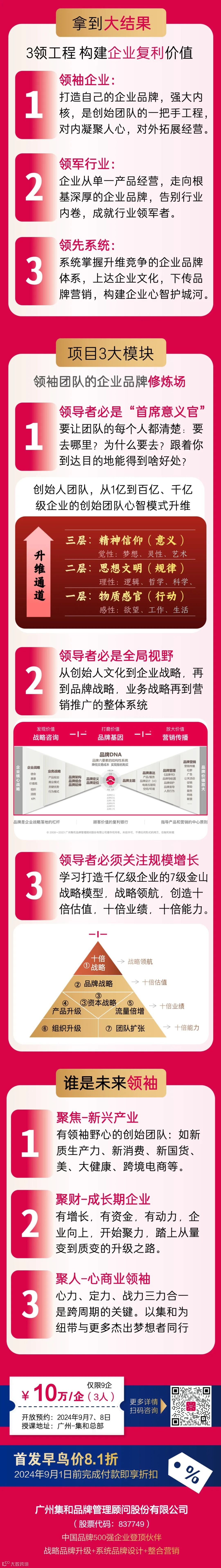 将企业品牌化是成长型企业,从创业到企业的必经之路,是解决这一系列问题的关键。企业在保持初创精神的基础上,构建能支撑更大规模运作的结构,巧妙平衡创新与稳定、灵活与纪律。成功的成长型企业能在扩张中保持核心竞争力与独特文化。现在你需要:
