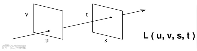 若一条光线通过两个平面UV和ST所产生的交点坐标分别为(u,v)和(s,t),此时就可以通过光场函数L(u,v,s,t)来表示这条光线的分布。L代表光线的强度,而(u,v)和(s,t)共同确定了光线在空间中分布的位置和方向。