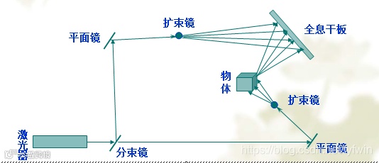全息投影技术是利用干涉和衍射原理记录并再现物体真实的三维图像的记录和再现的技术。其第一步是利用干涉原理记录物体光波信息,此即拍摄过程:被摄物体在激光辐照下形成漫射式的物光束;
