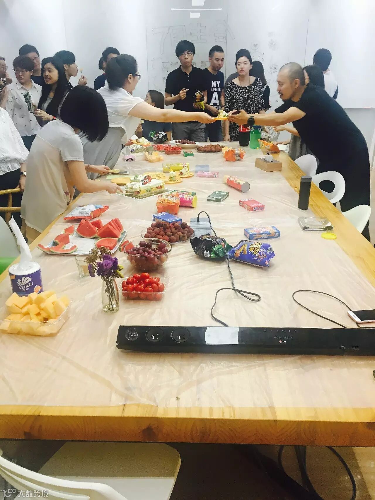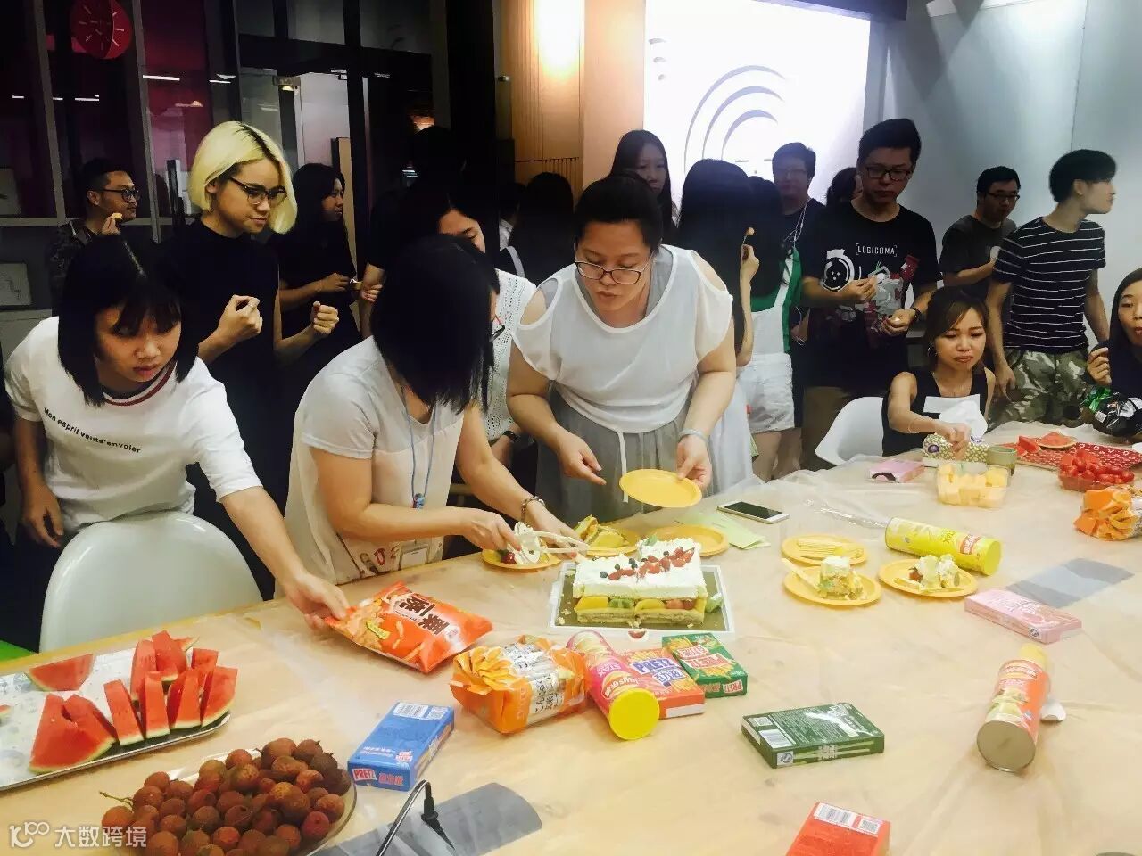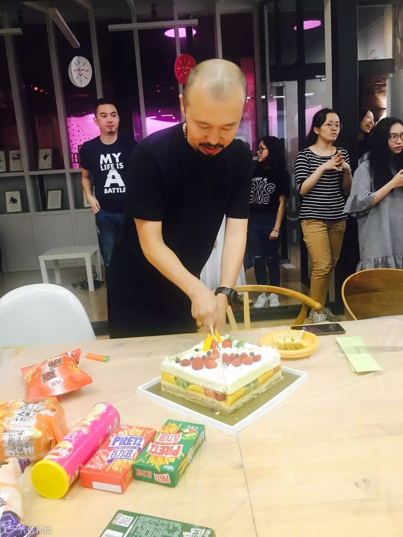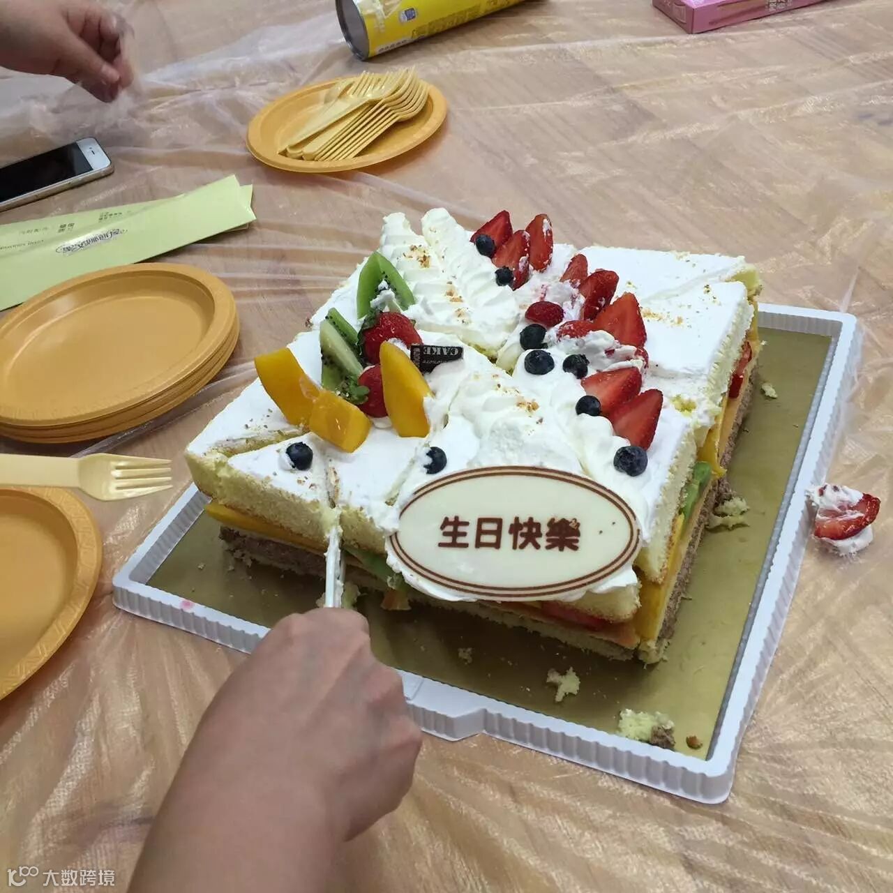 吹完蜡烛,给蛋糕切了历史性的一刀