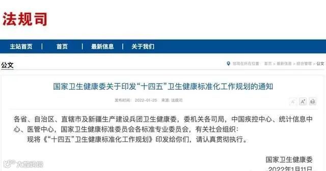 1月25日 / 国家卫健委 《“十四五”卫生健康标准化工作规划》
