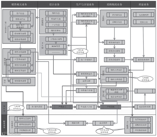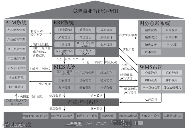企业信息化建设可采取“总体规划、分步实施”的原则,避免出现信息孤岛,ERP、PLM、MES和WMS系统是智能工厂信息化建设的重点,各系统的架构和功能设计以及系统间数据的接口设计是信息化规划的关键,各系统应实现信息的无缝 集成和数据交互,以实现企业“智能制造”的最终目标。