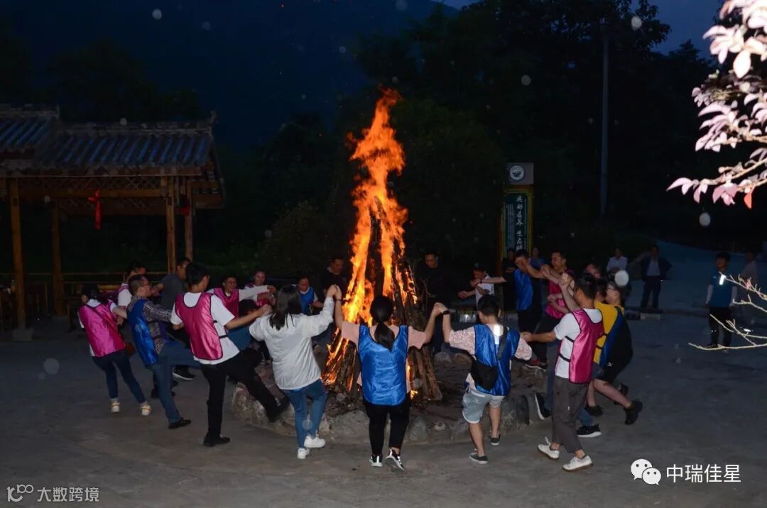 夜幕降临、灯光闪烁,公司领导点燃象征希望与未来的篝火,所有人围绕着熊熊燃烧的篝火,在动感的舞步中共同祈祷中瑞佳星的美好明天!