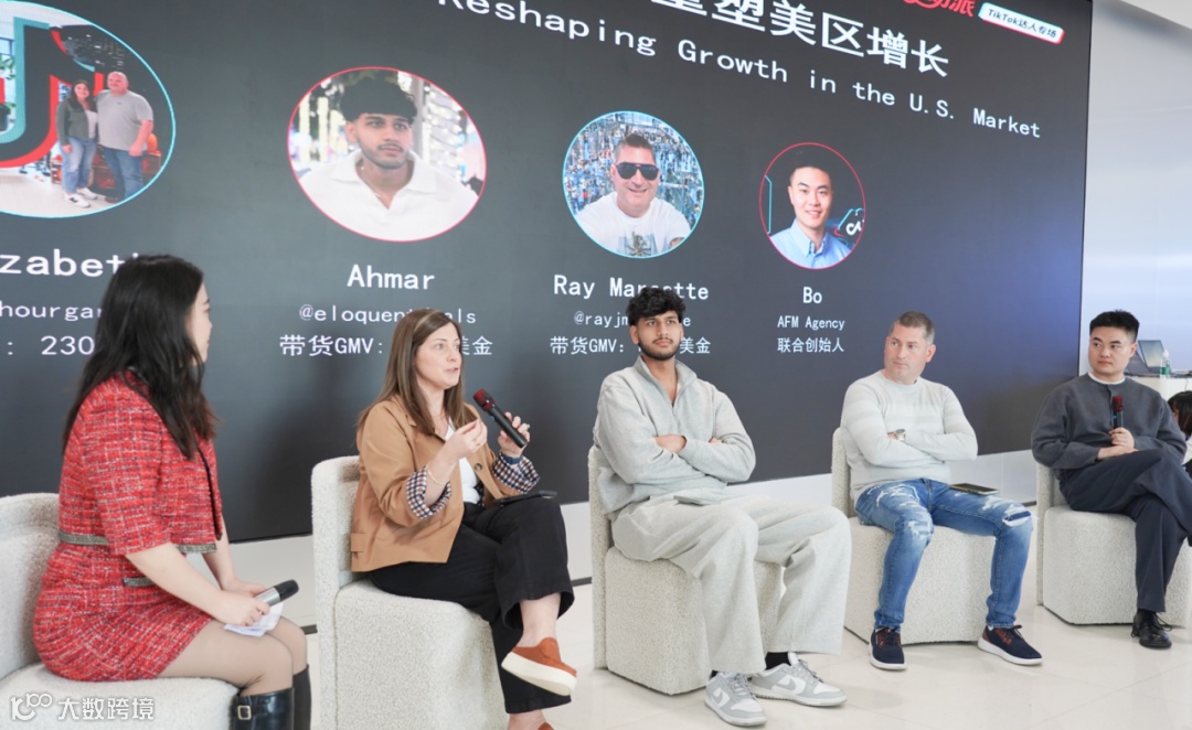 TikTok美区顶级带货达人Elizabeth(@amateurhourgardening)、Ahmar(@eloquentdeals)、Ray Marcotte(@rayjmarcotte),以及GlodaStory CGO Bo Luo、客户总监张宸若,围绕“达人与品牌长期合作路径”“美区爆品打造逻辑”“高转化内容创作技巧”等议题展开深度研讨。