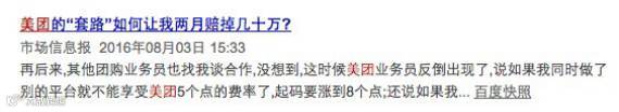 虽然消费者一开始得到了很大实惠,但是对商户的伤害却非常大,团购吸引过来的用户,粘性非常低,只是为了过来占个便宜,二次进店率很低,结果形成了商户做一单赔一单的尴尬局面。所以,即使美团已经在团购市场一统江湖,仍然无法摆脱外界关于“团购是吸血”的质疑,美团的模式,也至今未能得到资本市场的认可。