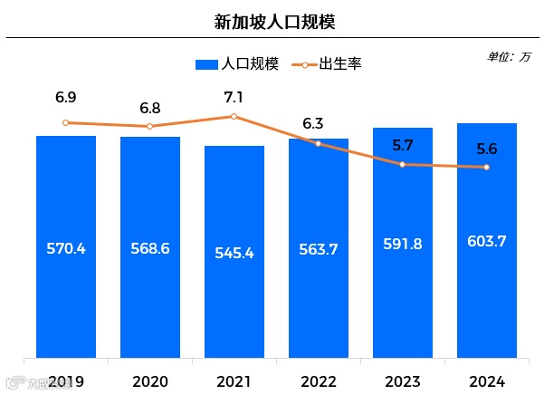 截至2024年,新加坡总人口约604万,属东南亚人口规模较小市场。出生率仅6.8‰,显著低于全球16.1‰均值,自然增长缓慢,人口增量主要依赖外来流入。截至2025年6月,外籍工人达191万人,同比增长2.7%。
