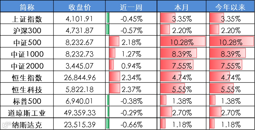 上周A股波动加剧,三大指数冲高回落,全市场日均成交额达3.47万亿元,周环比增长21.5%;成长与周期风格占优,金融、消费、稳定板块回调。