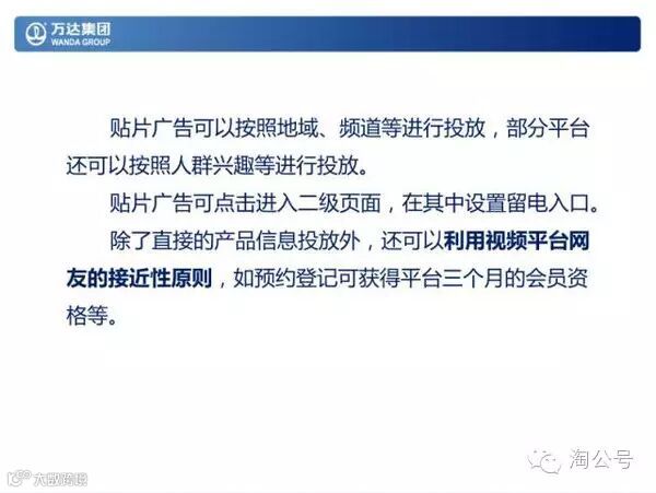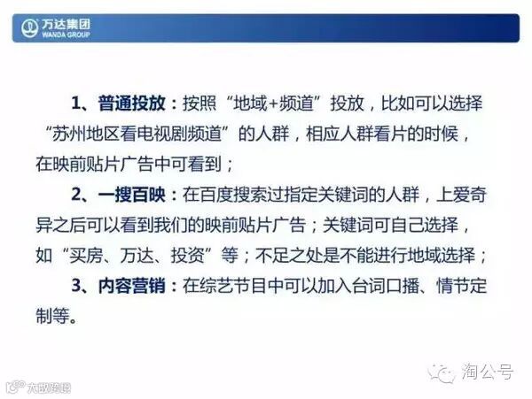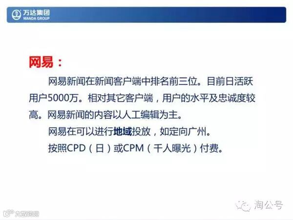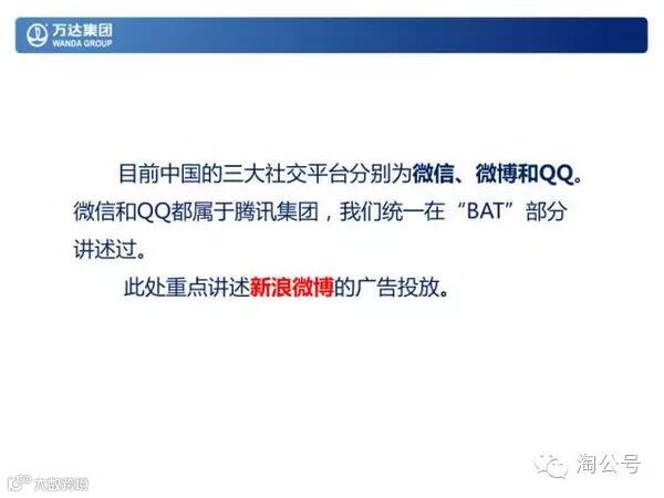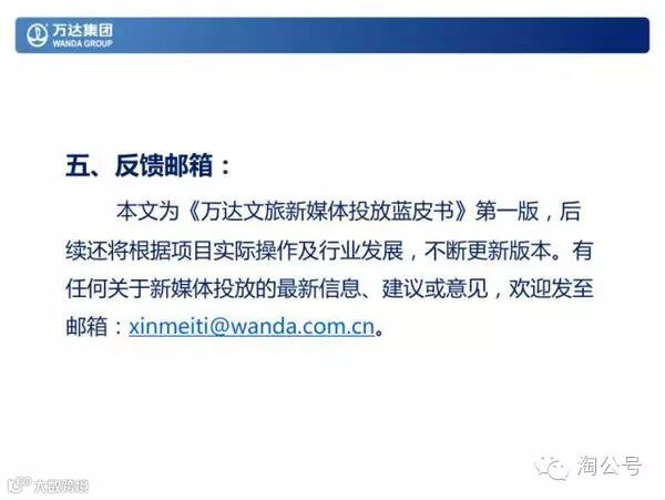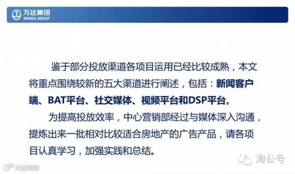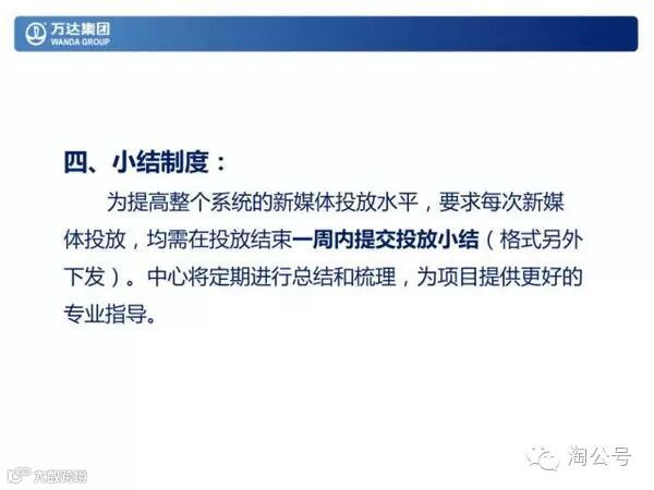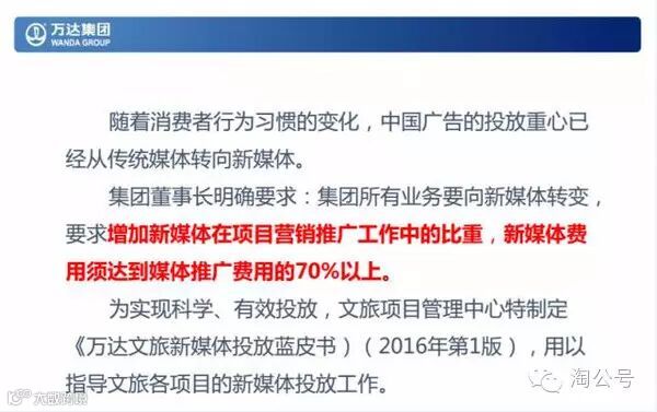 近日,万达集团官方微信公号万达城推送了一篇名为《万达集团新媒体投放蓝皮书》的文章,宣布王健林明确要求增加新媒体在项目营销推广工作中的比重,新媒体费用须达到媒体推广费用的70%以上。