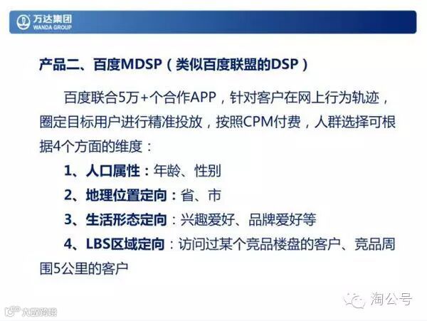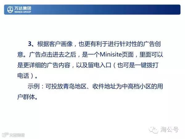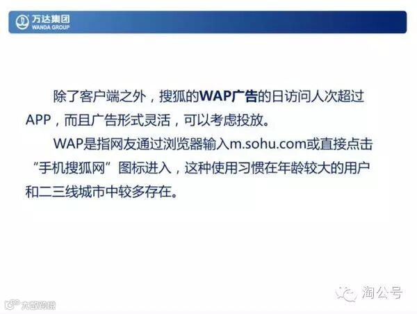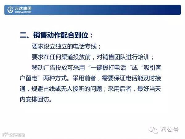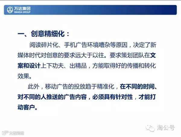 王健林认为,商业地产一年营销费用是几十亿,大多投到报纸、电视、现场活动等传统营销方式上了,到达率不够,效果也不好。现在农民工都有手机了,新媒体营销应该成为万达的方法。
