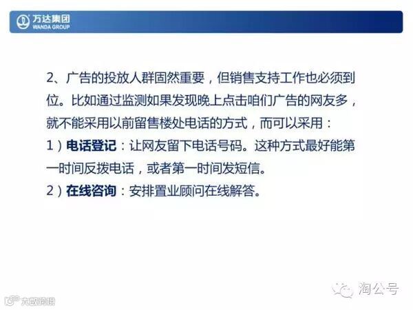 早在14年9月,在一次内部研讨会上,王健林提到即使房地产也要互联网思维。“明年开始,我们可否试试,把传统媒体的推广费用砍掉一半用于互联网营销,没准效果会更好。”这句不经意的一句话,再次凸显了传统媒体在运营上面临的困境。